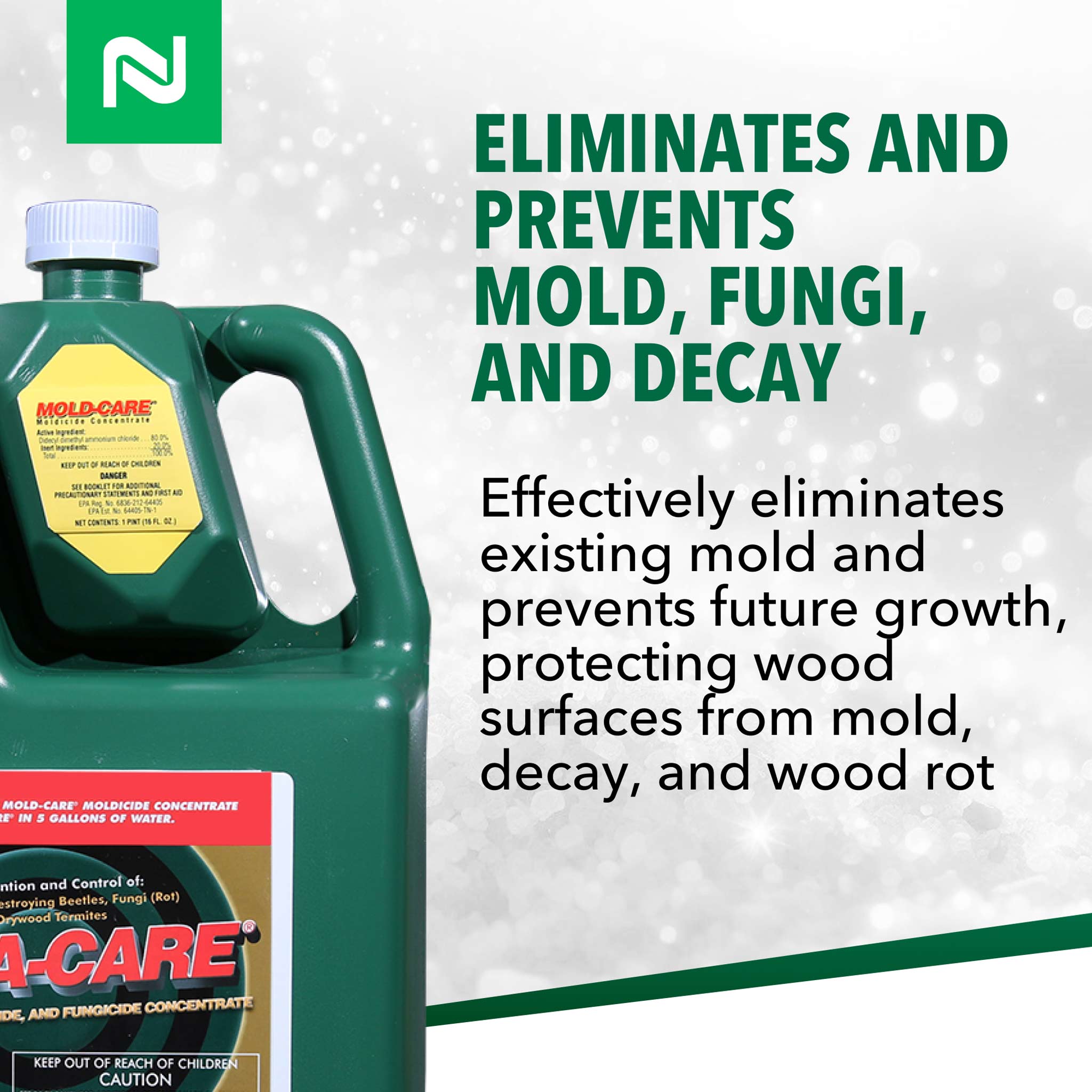 Mold-Care is the only EPA-registered product that will both kill and prevent mold. Combined with Bora-Care, it also kills and prevents decay fungi and wood destroying insects that share the same conducive conditions and actually cause much more damage.