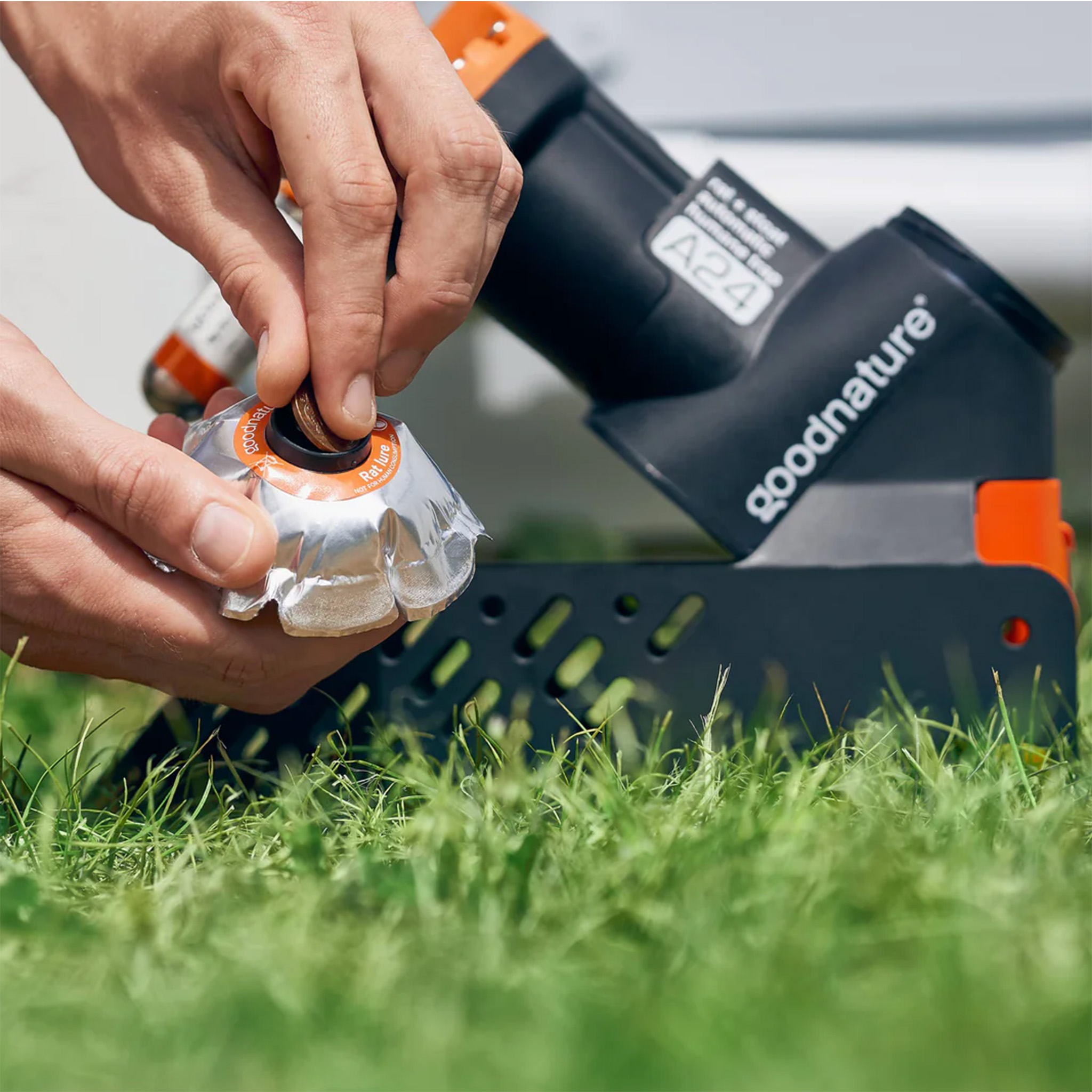 The Goodnature Automatic Rodent Lure Paste Pump is a 50g set-and-forget lure delivery system designed for long-term use in the A24 Rodent Trap Kit & the A24 Professional Rodent Trapping Kit. Once installed and activated, the pump steadily dispenses non-toxic, inticingly scented rodent attractant for up to 6 months, ensuring that your Good Nature trap always has fresh bait to maximize effectiveness.