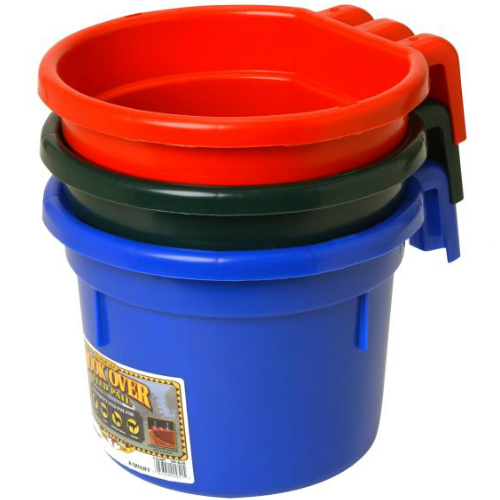 Little Giant Plastic Hook Over Feed 8 qt. is a pail designed to be easily hooked over any 2-by-wide board using its molded-in brackets. This durable and impact-resistant hook over can serve as a sturdy feed bucket with holes that allow you to screw it down in more permanent situations. This pail's rounded corners enables easy feeding access and makes it perfect for alpacas, llamas, goats, sheep, and small horses. This pail comes in blue and can hold up to 8 quarts or 2 gallons.