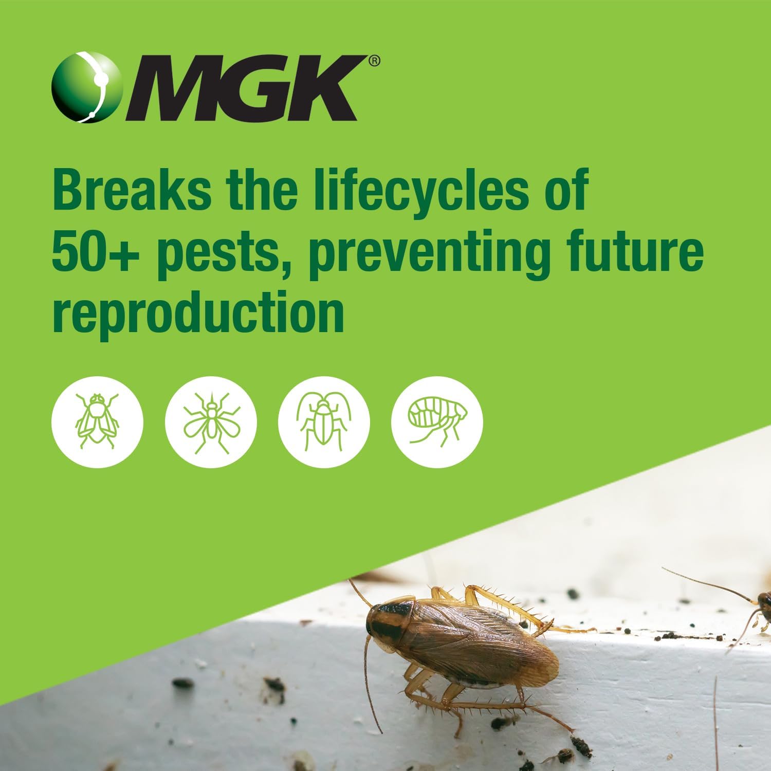 Ants, Beetles, Crickets, Fleas, Flies, Fungus Gnats, Midges, Moths, Mosquitoes, Roaches (German, Asian, Brown-banded) * See label for complete list |