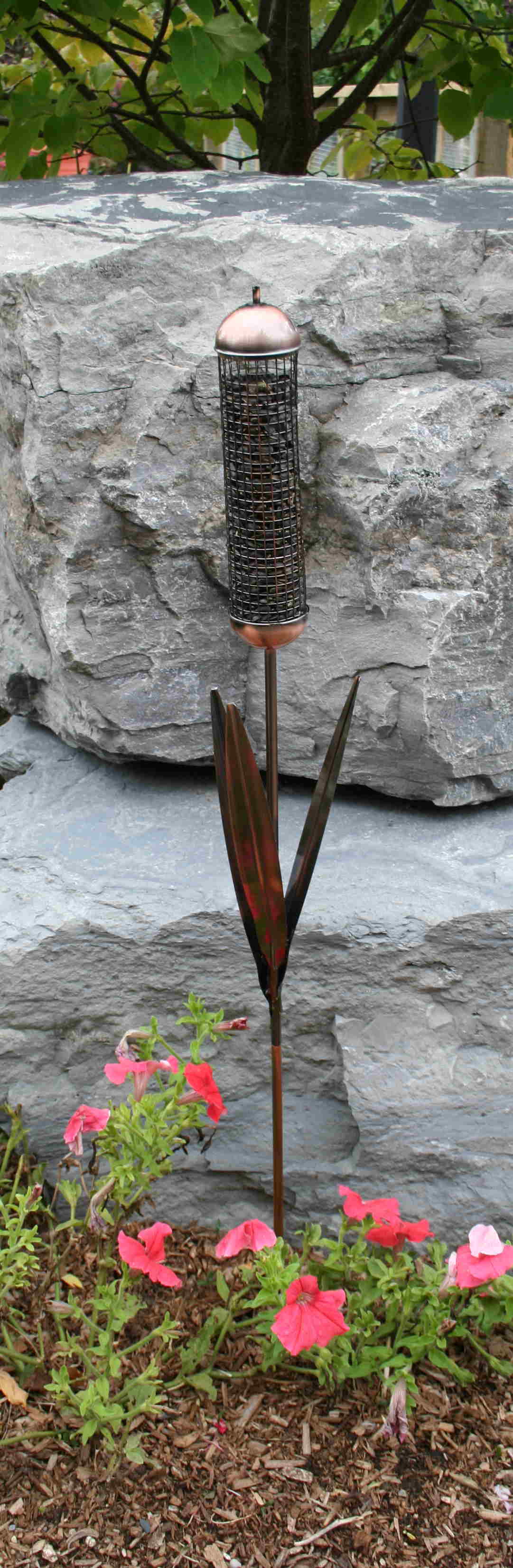 The PineBush Cattail Stake Peanut and Black Oil Bird Feeder (10778) is artistically designed to give your birds a durable and safe feeding station to enjoy with. It is made of powder coated mesh tube that ensures great resistance against squirrel damage and different weather conditions. The feeder has a capacity to hold generous amount of peanuts and black oil seeds. To model, simply mount the unit with a pole. The feeder's copper color will surely blend to your stylish yard or garden.